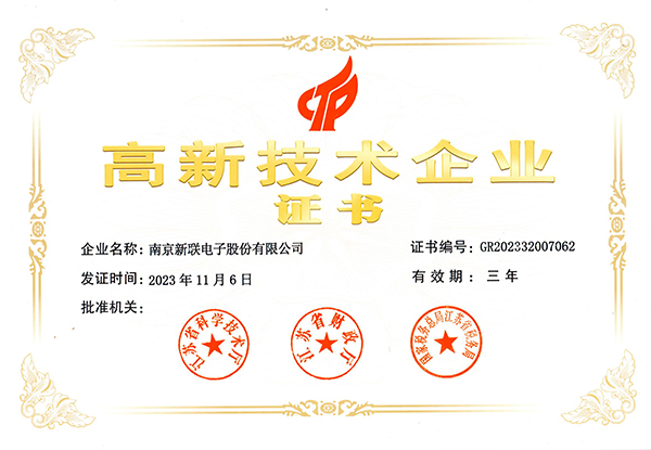 近日,新联电子收到江苏省科学技术厅、江苏省财政厅、国家税务总局江苏省税务局联合颁发的《高新技术企业证书》,证书编号:GR202332007062,有效期三年。本次认定系公司原高新技术企业证书期满后进行