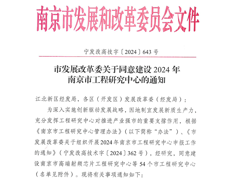 近日,南京市发展和改革委员会正式公布《市发展改革委关于同意建设2024年南京市工程研究中心的通知》,由新联电子承建的南京市电网数据智能采集工程研究中心成功入选。工程研究中心是依托骨干企业