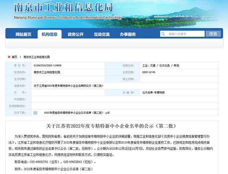 根据《关于江苏省2022年度专精特新中小企业名单的公示(第二批)》名单显示,南京新联电子股份有限公司凭借在专业领域的突出表现成功入选。据了解,“专精特新”企业是指具备“专业化、精细化、特